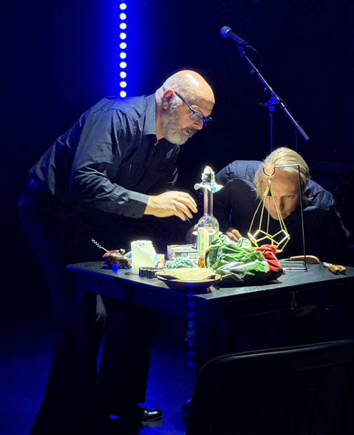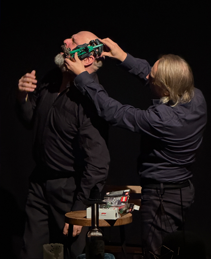 Viel verrückter und absurder kann es kaum sein, was die Schauspieler Helge Salnikau und Matthias Hecht sich da, zusammen mit dem Musiker Jochen Brüse am E-Piano, vorgenommen haben – eine abendfüllende „Show der Dinge“. Vollkommen unvorbereitet und absolut unwissend. Denn Ausgangspunkt für diesen Bühnenabend voller Ungewissheit sind die vom Publikum mitgebrachten Alltags-Gegenstände. Und das kann wirklich alles sein, da sind der Phantasie keine Grenzen gesetzt! Erst mit Beginn der Show sehen die drei Akteure, auf was sie sich da eingelassen haben…das kann ja heiter werden, skurril und abwechslungsreich. Ein Spiel mit dem Mut zum Risiko oder der Verzweiflung. Scheitern gehört zum Konzept und ist doch bloß immer wieder der Beginn einer neuen Idee.