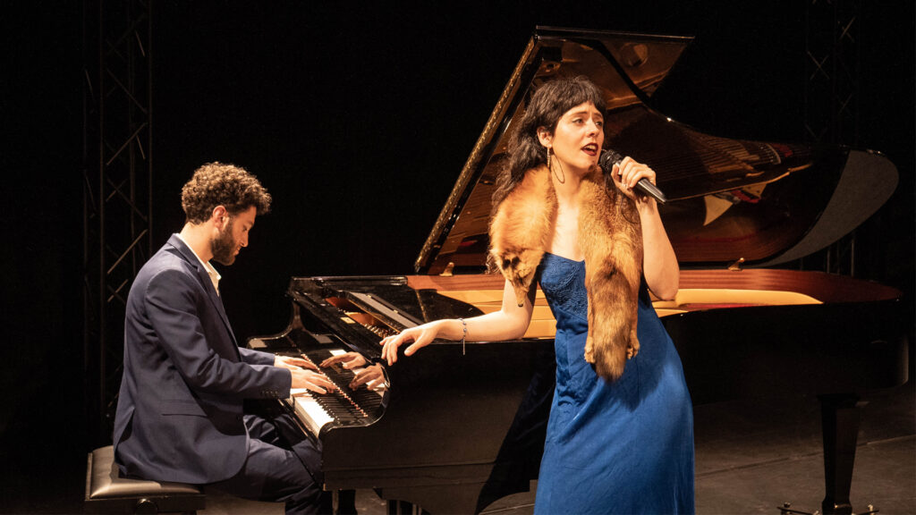 Frollein ist Kabarett im Hier und Jetzt – mit offenen Augen und gelöster Handbremse. Frollein ist politisch, charmant, wortgewandt: Frollein ist Diva – unentschuldigend, authentisch Diva. Gemeinsam mit ihrem Pianisten Karim the Dream hält sie der deutschen Gesellschaft den Spiegel ihrer eigenen Doppelmoral vor die Nase. Aber das wiederum schmackhaft garniert und serviert auf einem Silbertablett. Derbe über Zustände fluchend trägt sie dabei Fuchspelz – Makaber? Vielleicht, aber vor allem nachhaltig. Weil Frollein auch das, was „früher besser war“ irgendwie noch nostalgisch integriert und dadurch zelebriert. Ein Abend mit Frollein erinnert musikalisch an Hilde Knef, Georg Kreisler und Rainald Grebe und versprüht trotzdem seinen ganz eigenen, aktuellen Charme. Frollein ist unbequem. Weil man sich auch als Zuschauende_r ganz genau unter die Lupe nehmen muss. Frollein ist verrauchter dunkler Jazz-Keller, Schönheitsfleck, Paillettenkleid – elegant und zugewandt, dabei eigentlich sehr sensibel.. und gerade deshalb unbezwingbar! Frollein Konzerte hallen auch tagelang noch nach und machen sehnsüchtig wie flüchtige Überreste edlen Parfums.