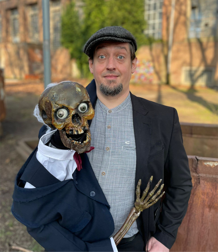 Hier trifft Horrorshow auf Zeitreise und historische Fakten verschmelzen mit skurrilem Humor. Im Archäologiemuseum (in Herne) spricht Kai G. Bernhardt in seinen Führungen über alte Knochen und Menschheitsgeschichte, Doch wenn es Nacht wird im Museum lässt er seinen Knochenkumpel Scully sprechen… Zum ersten Mal auf der Bühne, aber von Beginn der Menschheitsgeschichte an dabei, erzählt das kecke, kodderige Knochengerüst Geschichten aus Grüften, Zoten über Zombies sowie Irrungen und Wirrungen der Wissenschaft. Auch für Fragen des Publikums steht Scully als untoter Lebensberater bereit.