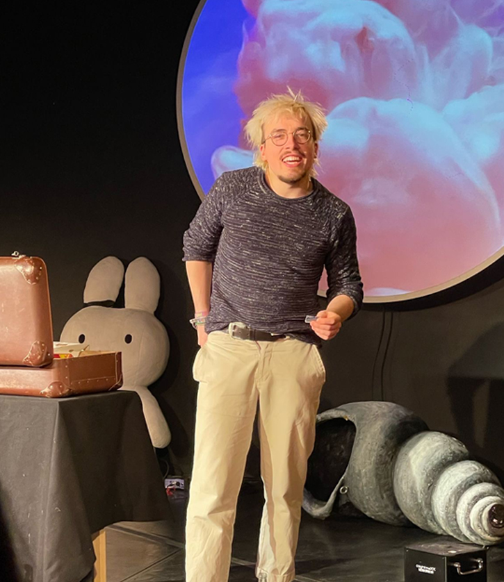 Aus Köln bringt Raphael Havemann Eigenkreationen mit, um seine Liebe zur Zauberei zu feiern. Aber auch andere Leidenschaften wie Malerei oder das Kultgetränk Club Mate sorgen für Publikumsinteraktion und einige magische Momente. Ob neue Tricks oder altbewährte Lieblingsstücke – an Abwechslung fehlt es nicht, wenn Raphael mit den verschiedensten Gegenständen zaubert. Mit schrägen Ideen, ehrlicher Spielfreude und einem Hauch Chaos entsteht eine Show, die genauso unberechenbar wie unterhaltsam ist.
